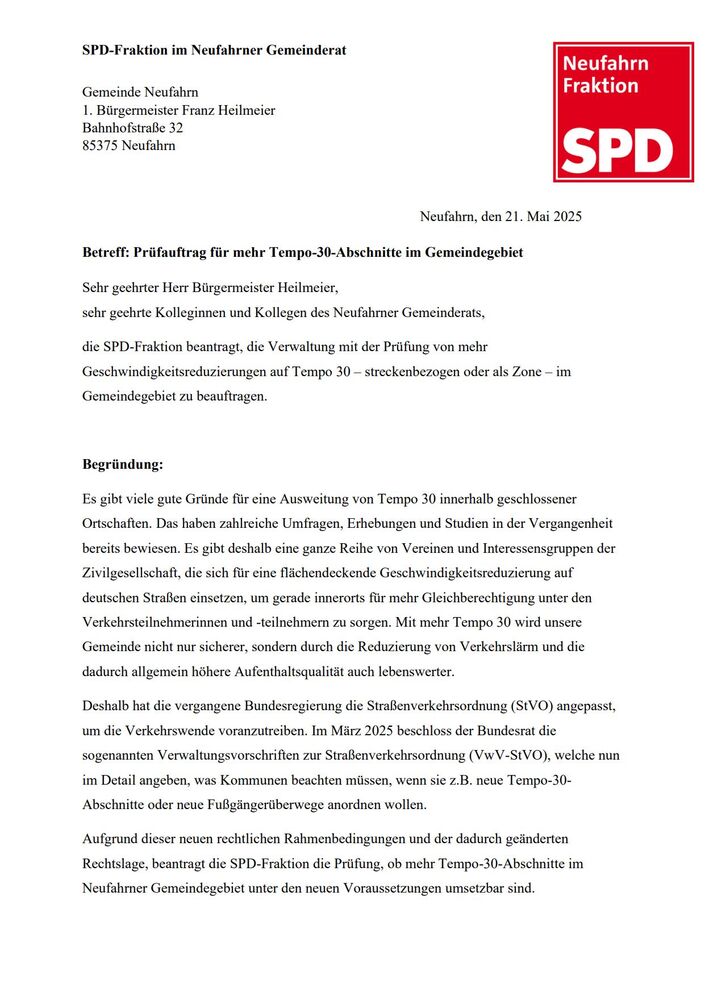 Für die SPD-Fraktion, Neufahrn, den 27. Mai 2017