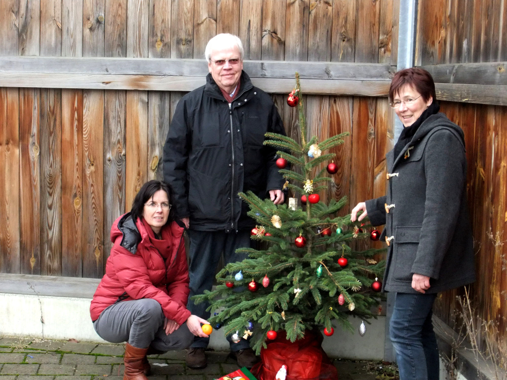 Ein Weihnachtsbäumchen und drunter Nüsse, Mandarinen, Plätzchen und Schokolade. In diesem Jahr waren Ulla Schablitzki, Lothar Brück und Beate Frommhold-Buhl dabei.
