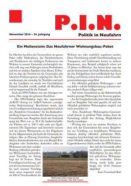 Die aktuelle Ausgabe der kommunalpolitischen Zeitschrift der SPD Neufahrn ist druckfrisch im November 2016 erschienen. Sie wird an alle Haushalte in Neufahrn verteilt.