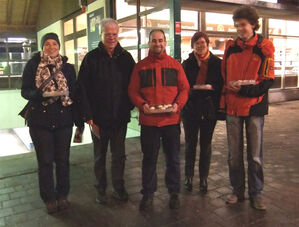 Hier die tapferen Früh-Verteiler: Die SPD-Gemeinderatskandidaten Monika Holzer, Lothar Brück, Ulla Schablitzki und Victor Weizenegger.
