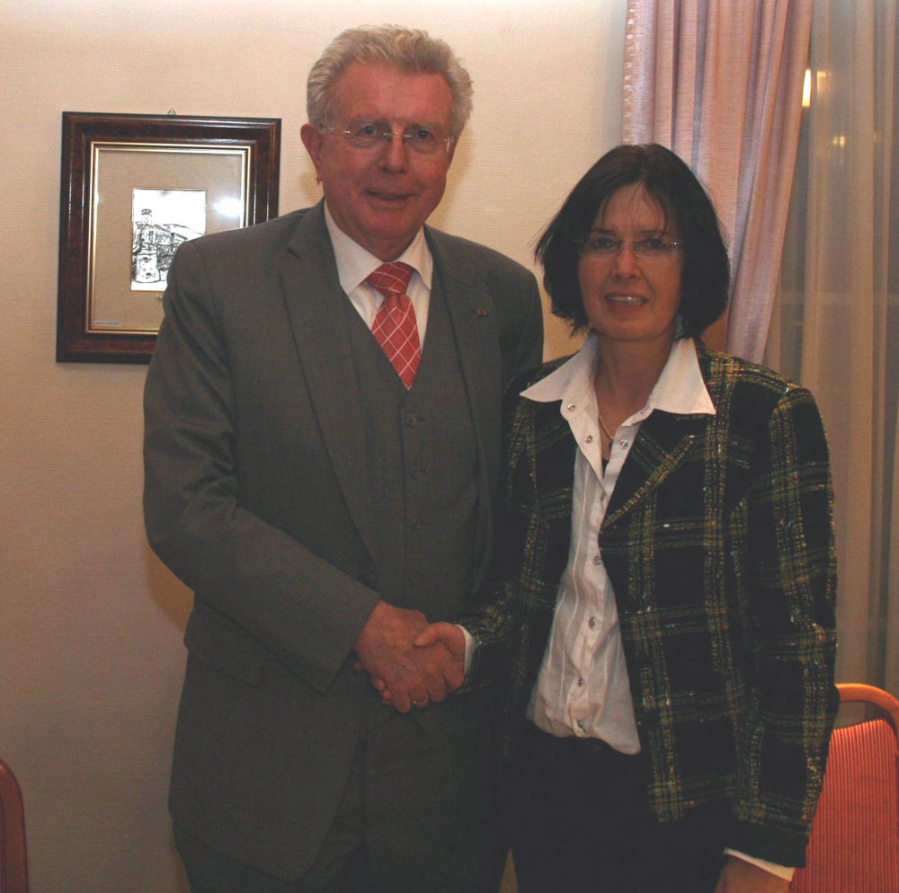 Bürgermeisterkandidatin Beate Frommhold-Buhl begrüßt ihren Gast Günther Knoblauch